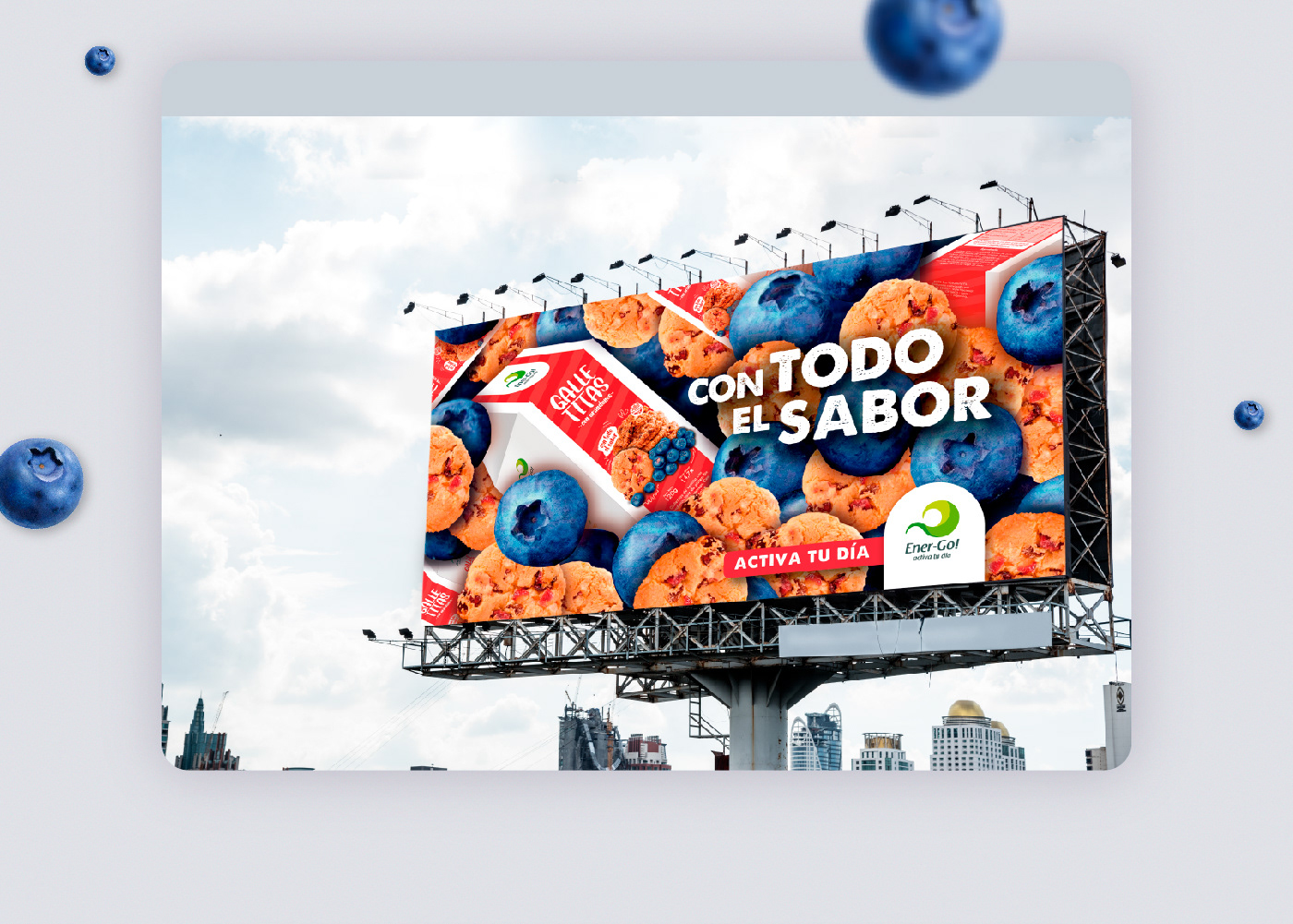 Campaña gráfica destinada a la publicidad del producto Galletitas con Arándanos™ de la empresa Ener-Go!™.