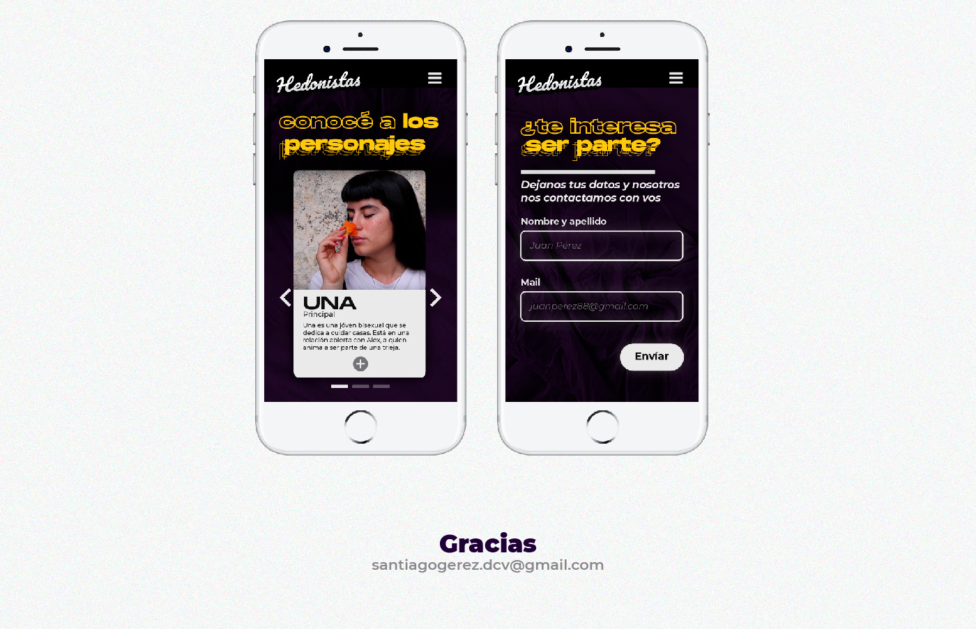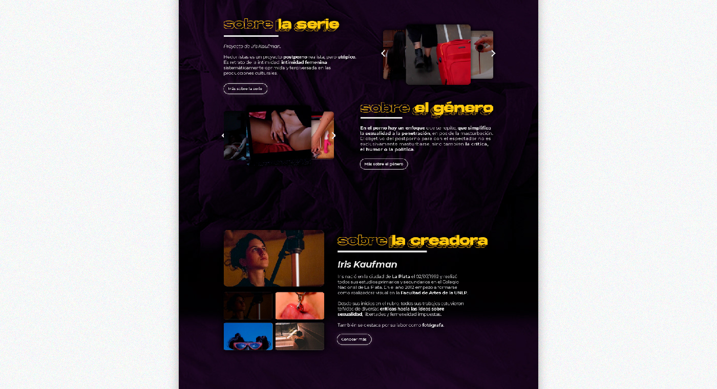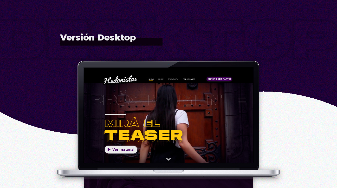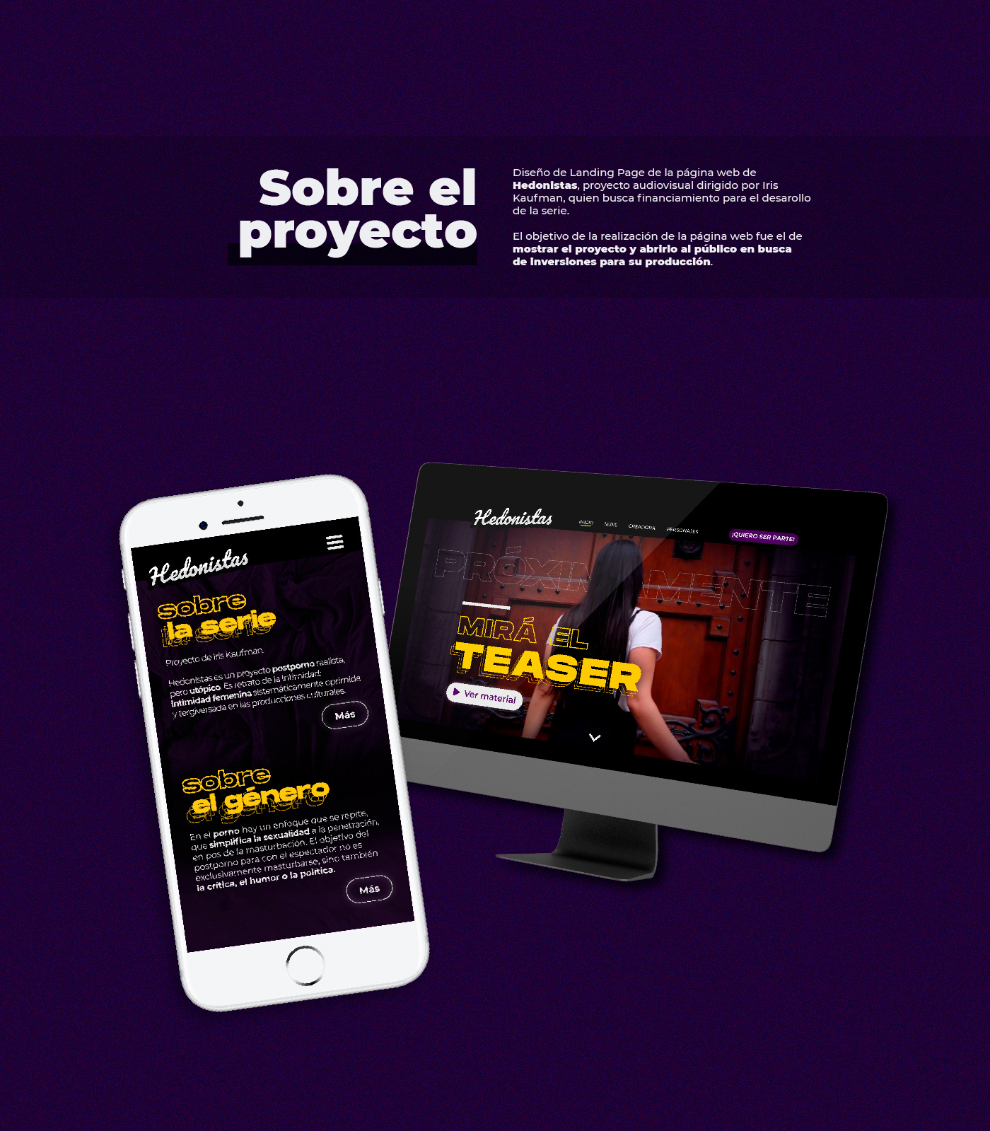 Diseño de Landing page para el proyecto Hedonistas, en función de mostrarse como realización audiovisual en busca de financiamiento para su desarrollo y materialización.